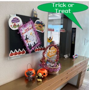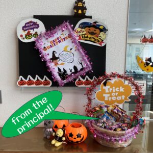 🎐令和7年10月27日(月) 学校長からステキなハロウィンプレゼントがありました🎃🧡 なんと、31日まで受付にお菓子が用意されていて、受付で元気に「トリック・オア・トリート!」と言うと、教職員の方が「ハッピー・ハロウィン!」と返してくれて、お菓子を1つもらえるんです😆🍬 講義や緊張続きの実習でクタクタだったけど、甘いお菓子でほっとひと息つけました…♡また明日からも頑張れそうです💪🌈