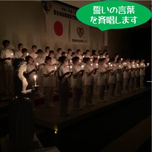 おごそかな雰囲気の中、ナイチンゲール像から灯を受け取り、クラスで話し合って決めた「目指す看護師像」を全員で誓いました✨