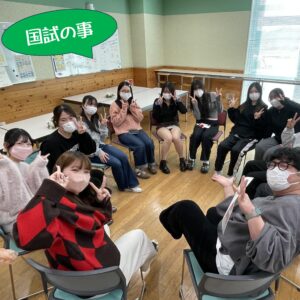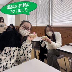 国家試験を終え、ホッとした表情の3年生を学生ラウンジでお迎えしました。