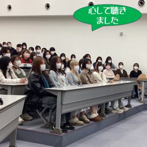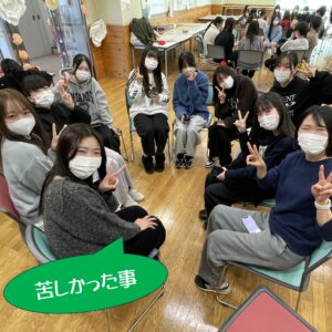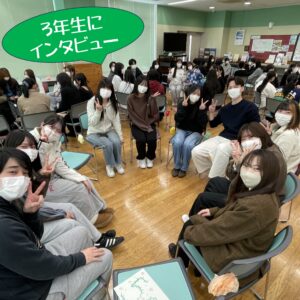 国家試験への取り組みや就職のこと、実習での学び、楽しかったことや大変だったことなど…リアルな体験談をたくさん聞くことができました。これから進路を考える1・2年生にとって、とても貴重な時間になりました。