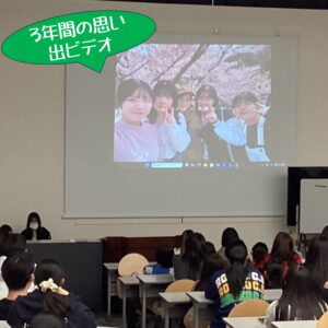 会場を移して、1年生が心を込めて制作した思い出ビデオを上映🎥